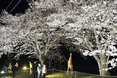 名所目指し幻想の光 東かがわ「小海の松崎桜」 地元有志、周辺の環境整備 動物のオブジェと競演