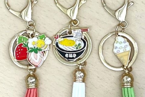 香川のグルメをキーホルダーに 穴吹エンタ 道の駅、SAで販売