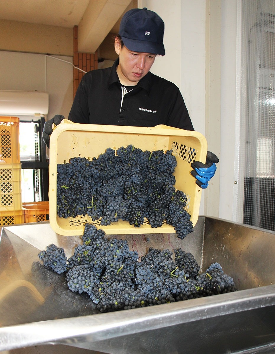 松本朋弥副工場長は「今年は雨が少なかったのでブドウの病気もなく、糖度も18~20度と十分な甘みで品質は上々。家族でわいわいしながら飲んでほしい」と話した。