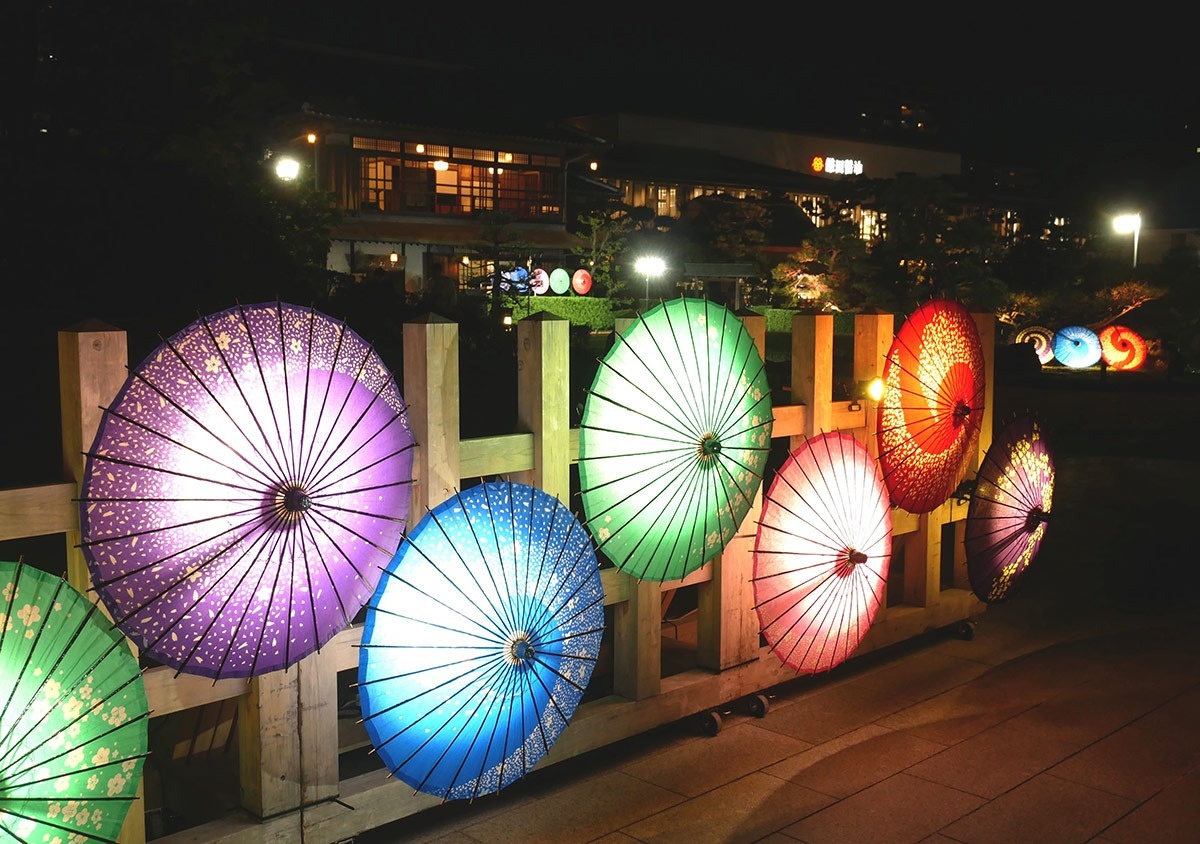 光の和傘、中秋彩る 坂出・香風園 6日まで観月会