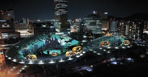 今回はメインアリーナとサブアリーナのドーム屋根に、ハロウィーンにちなんだ約15分間の映像をアリーナ北側から繰り返し投影する。時間は各日午後6時~同8時半。会場周辺にはキッチンカーも並ぶ。