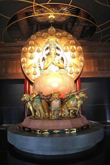 完成した仏像は高さ約4メートルの座像で、正面に五仏を十字形に配した宝冠を着け、8頭の獅子を置いた蓮華(れんげ)座に座る。光背に37体の小さな仏像が立体的に施されている。2011年に構想し、総事業費は約1億5千万円。一部をクラウドファンディング(CF)による寄付で賄った。