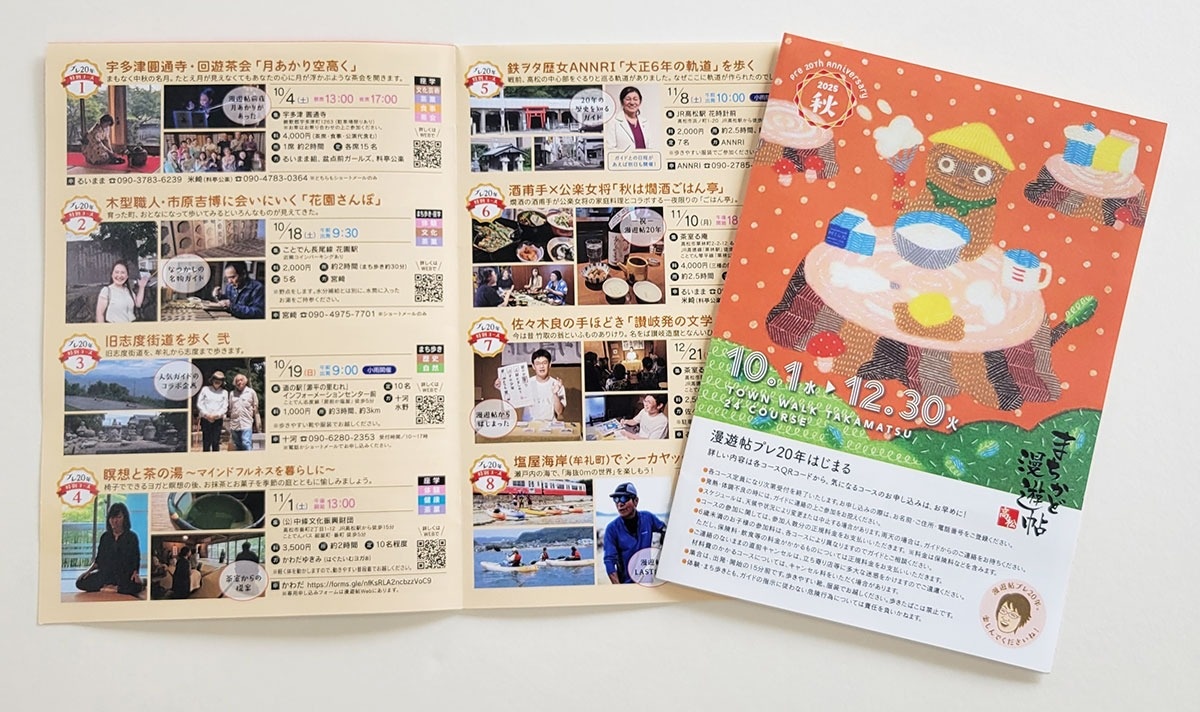 歴史や自然、文化など高松のさまざまな魅力を市民がプロデュースして発信する「高松まちかど漫遊帖」(同実行委主催)の秋編のパンフレットが完成した。1万2千部を作製し、市役所や市内の道の駅などで無料配布している。