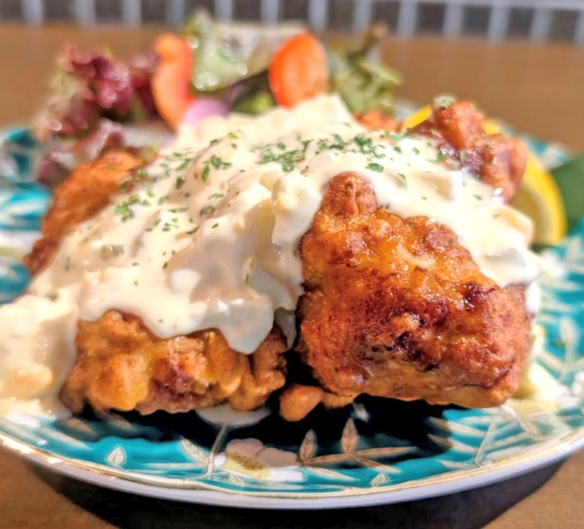 国産鶏もも肉にスパイスで下味を付けて揚げ、自家製のタルタルソースで味わう「スパイスとり天」(680円)が一押し。スパイスはひきたてを使い、香り高いのが特徴。定番の居酒屋メニューもそろう。