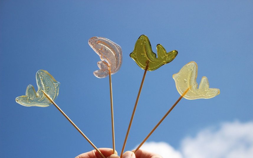 飴は県産ブランド魚「オリーブハマチ」をイメージした形で、サイズは縦約5・5センチ、横約4センチ。同商店オリジナルの「伝統の味」をはじめ、県の特産品を使った「小豆島オリーブ」「瀬戸のレモン」「高瀬茶」「さぬきひめ」の5種を用意した。