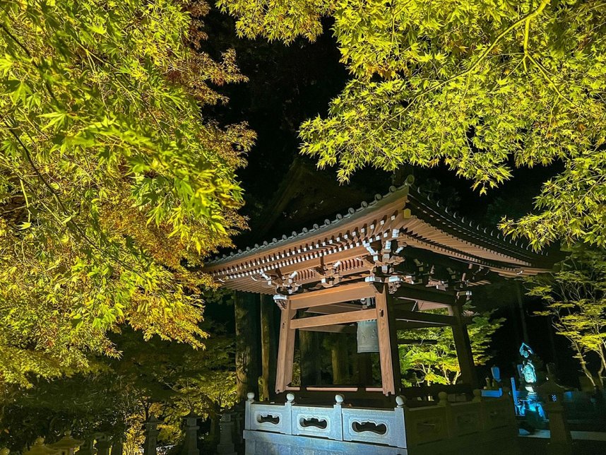 香川県観音寺市大野原町と徳島県との県境にある標高911メートルの四国霊場66番札所・雲辺寺(徳島県三好市)で、境内の色づいた木々にライトが輝く「紅葉のライトアップ」が31日から始まる。期間は11月3日までと同7~9日の計7日間。