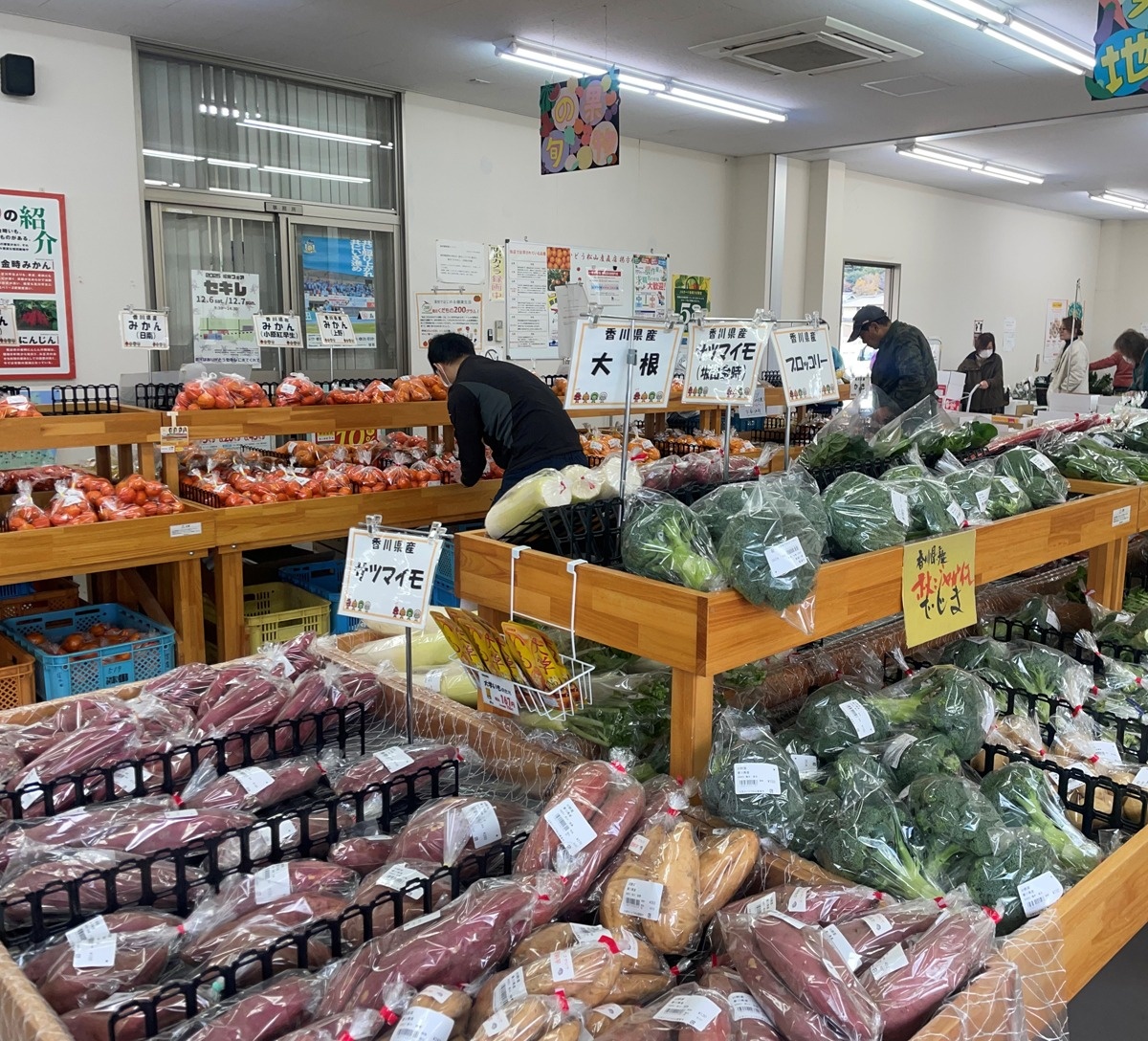 金時ニンジンの需要がピークになるのは年末。おせちやお雑煮に欠かせない鮮やかな赤のニンジンを求め、多くの人がやってくる。近隣で生産が盛んなブロッコリーなど、新鮮な冬物野菜も豊富。夏に取れる金時イモを貯蔵しておき、冬の午前中限定で販売する焼きイモも人気があるという。