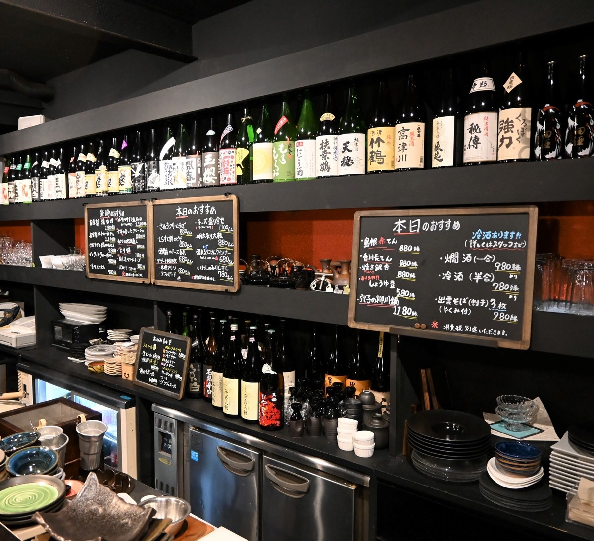 日本酒を温めて飲む「燗酒(かんざけ)」を好み、全国の蔵元や愛飲家が集う勉強会にも足を運ぶ店主が開いた和食居酒屋。「天穏」や「辨天娘(べんてんむすめ)」といった山陰の日本酒を中心に、50~60種を取りそろえている(燗酒一合980円~)。店主に銘柄を選んでもらえるので初心者も安心で、女性のリピーターも多い。穴子の一夜干しなどお酒に合うあても豊富。
