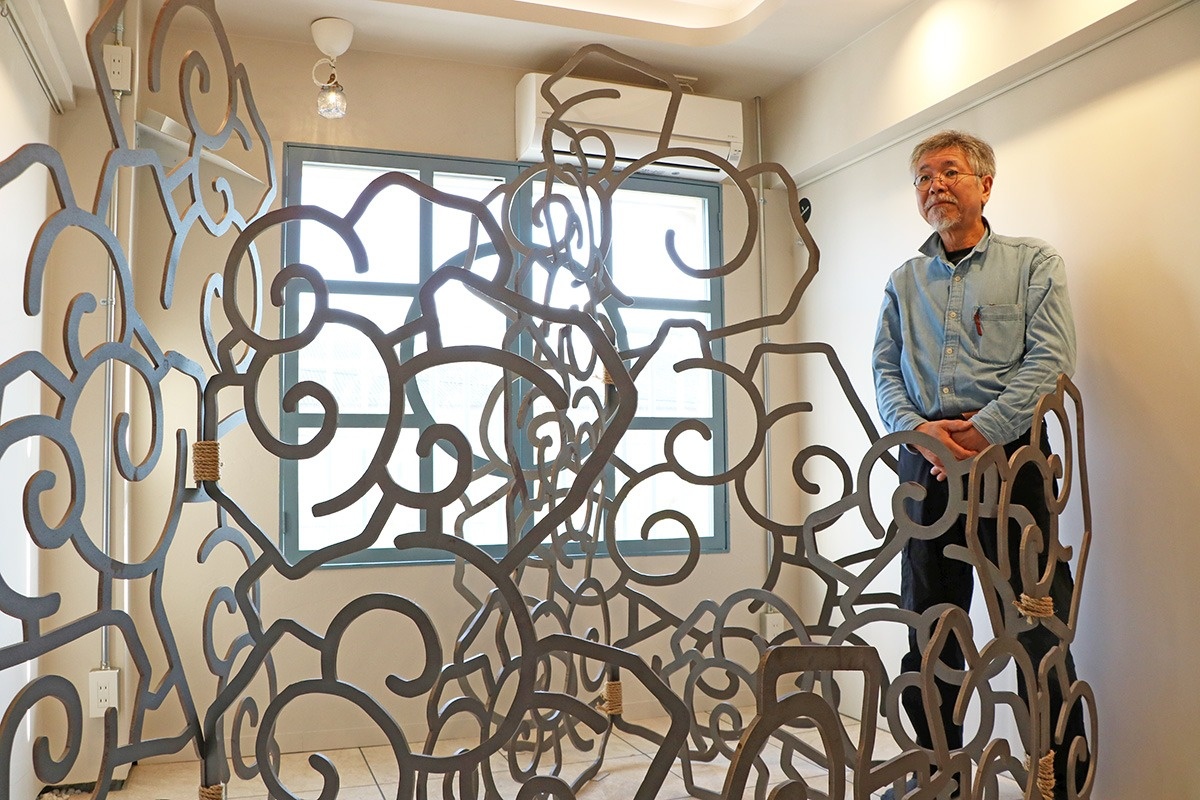 鉄を使った彫刻作品を手がける坂出市の彫刻家さとうゆうじの個展が、香川県高松市高松町の「1つだけ美術館」で開かれている。4畳半の空間にラオスに伝わる精霊の「すみか」をテーマにした作品がたたずみ、神秘的な雰囲気を創り出している。25日まで。