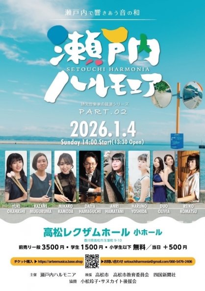 瀬戸内ハルモニアは高松市出身のサヌカイト奏者小松玲子さんが、故郷の音楽界を盛り上げるとともに若手に発表の場を提供しようと2023年に企画。