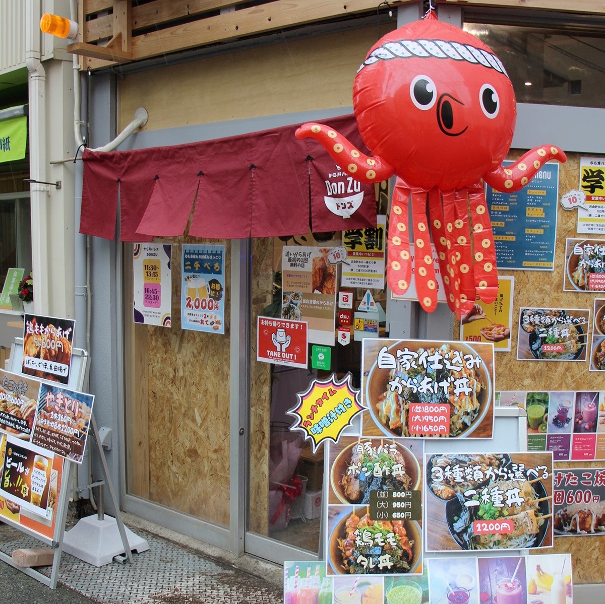 香川県仲多度郡琴平町の飲食店「たこやき&やきとり スカンク」の姉妹店で、「からあげ丼」が看板メニュー。唐揚げは鶏のもも肉を同町産のしょうゆを使った特製だれにつけ込み、少し甘みのある味わいに仕上げている。豚バラポン酢丼や鶏モモタレ丼などの丼のほか、たこ焼きや焼き鳥もある。メニューは全てテイクアウトが可能。夜はお酒も楽しめる。