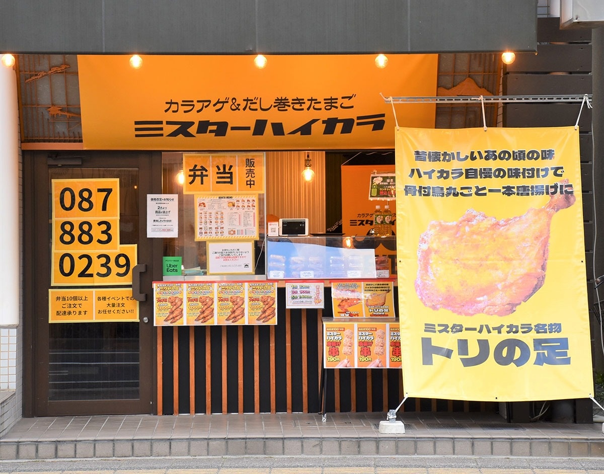 ジューシーで食べ応え十分な唐揚げと、甘さ控えめで優しい味わいのだし巻き卵がメインの弁当などを提供する。弁当は1番人気の「カラアゲ&ダシマキのり弁」(940円)や、白身フライ、鶏天、牛肉ポテトコロッケなどから好きなおかず2品を選ぶ「ハイカラBENTO」など、豊富なメニューを取りそろえている。テイクアウトのみ。