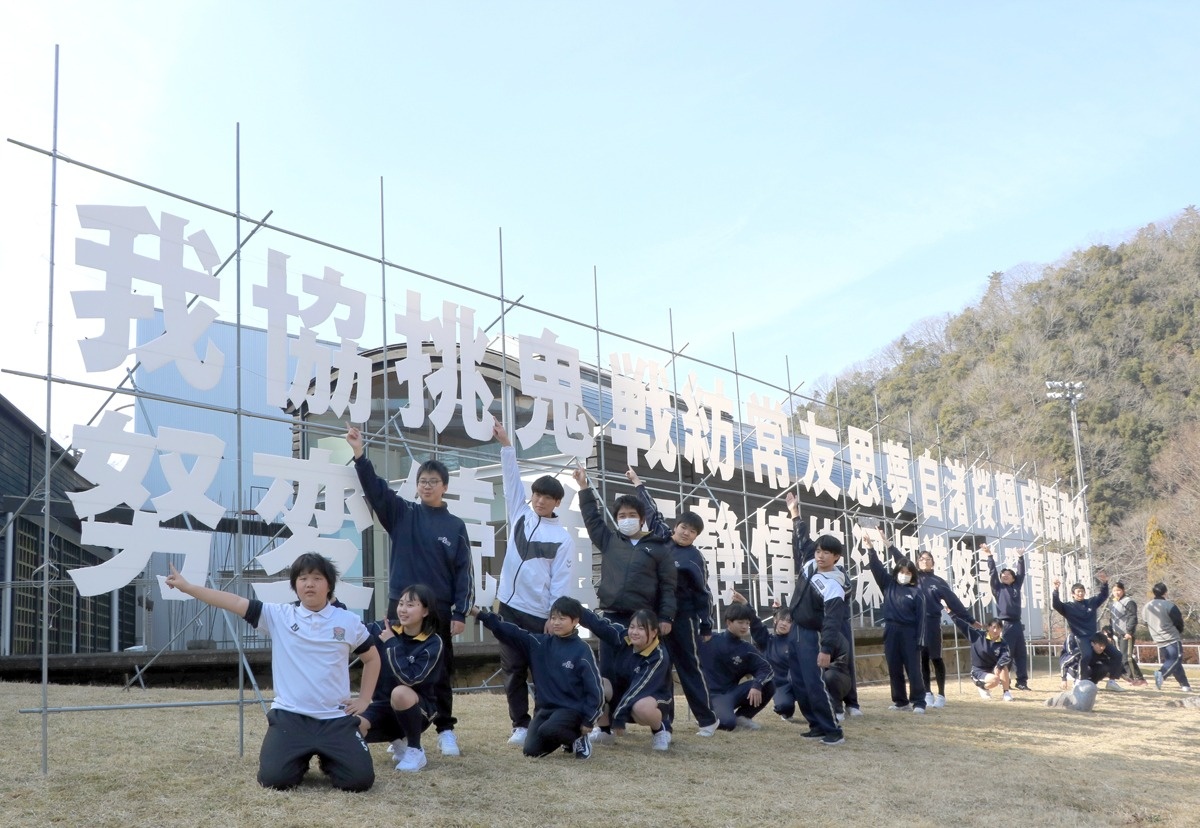 香川県高松市塩江町の塩江中学校(山地京子校長)の生徒が同校OBの彫刻家中井弘二郎さん(54)と一緒にアート制作に取り組み、同町の高松市塩江美術館で展示作業を行った。生徒の好きな漢字や言葉をテーマにした作品で、同館の企画展として17日から公開する。生徒は「私たちの思いが詰まった作品に浸って」と来場を呼びかけている。