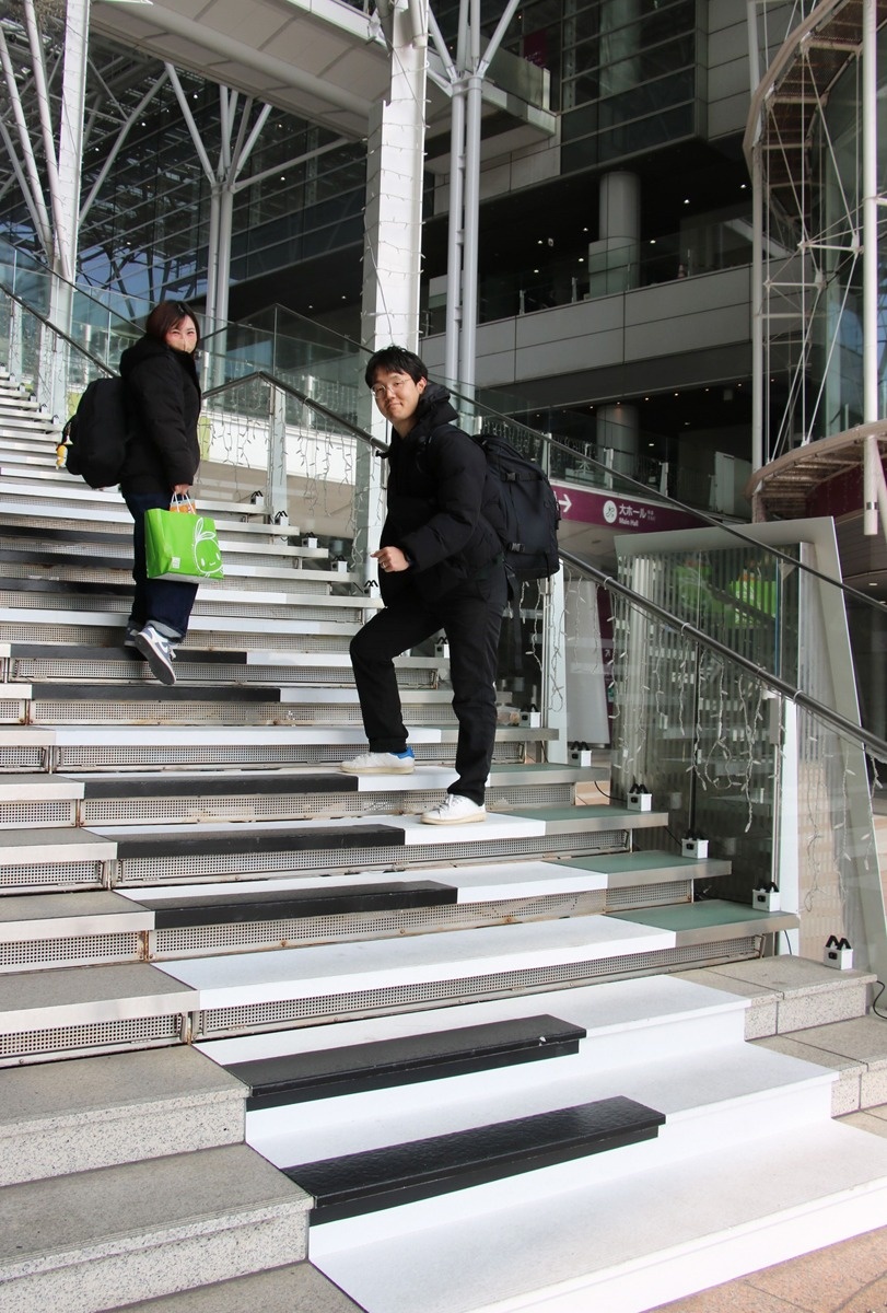 訪れた人は階段の仕組みに気付くと驚いたような表情を見せ、上ったり下りたりして楽しんでいる。同協議会担当の佐藤隆大さんは「今後もこうした取り組みを通じてサンポート地区の盛り上がりの一端を担えたら」と話している。