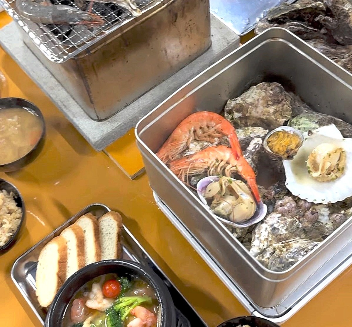 カキなどの海鮮を缶の中でじっくり蒸した「カンカン焼き」を楽しめる。濃厚でクリーミーな味わいの希少な「三年牡蠣(がき)」(1キロ2200円)、エビやサザエ、イカ、アサリ、ホタテを加えた「ミックス」(5800円)が一押し。和風だし、ガーリックバターなど4種類の味を選べる。アヒージョやご飯物、焼き物などサイドメニューも充実している。