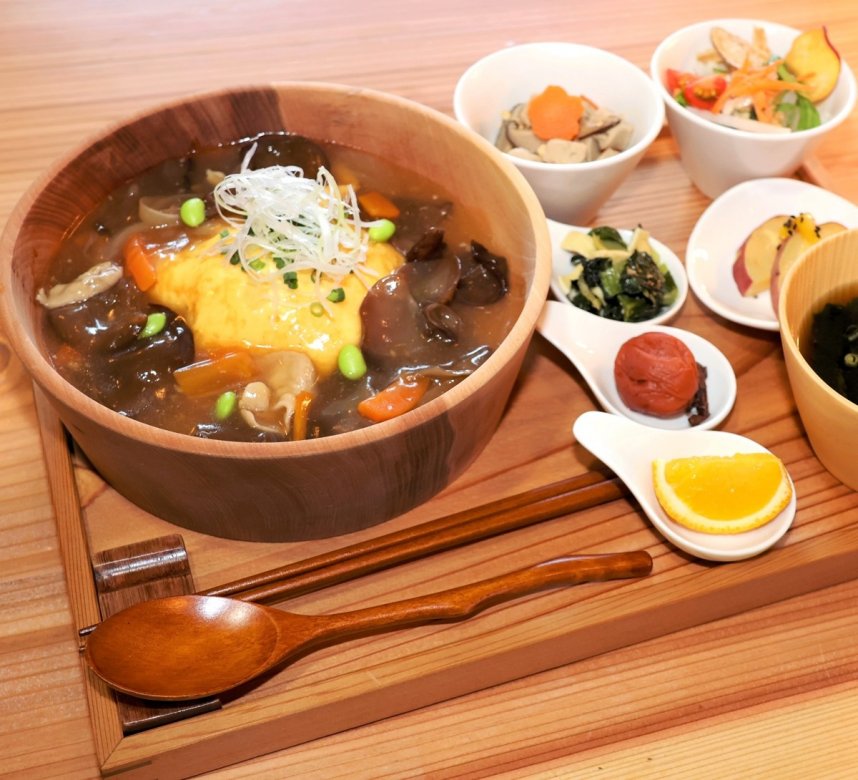 香川県高松市塩江町の建設会社が、自社栽培のキクラゲを使ったメニューを味わえるカフェをオープン。弾力のある食感のキクラゲを野菜と合わせてあんかけにした丼をメインに、みそ汁やサラダ、小鉢がセットになったプレート(1300円)を提供する。築100年以上の古民家を改修し、落ち着いた内装も魅力。