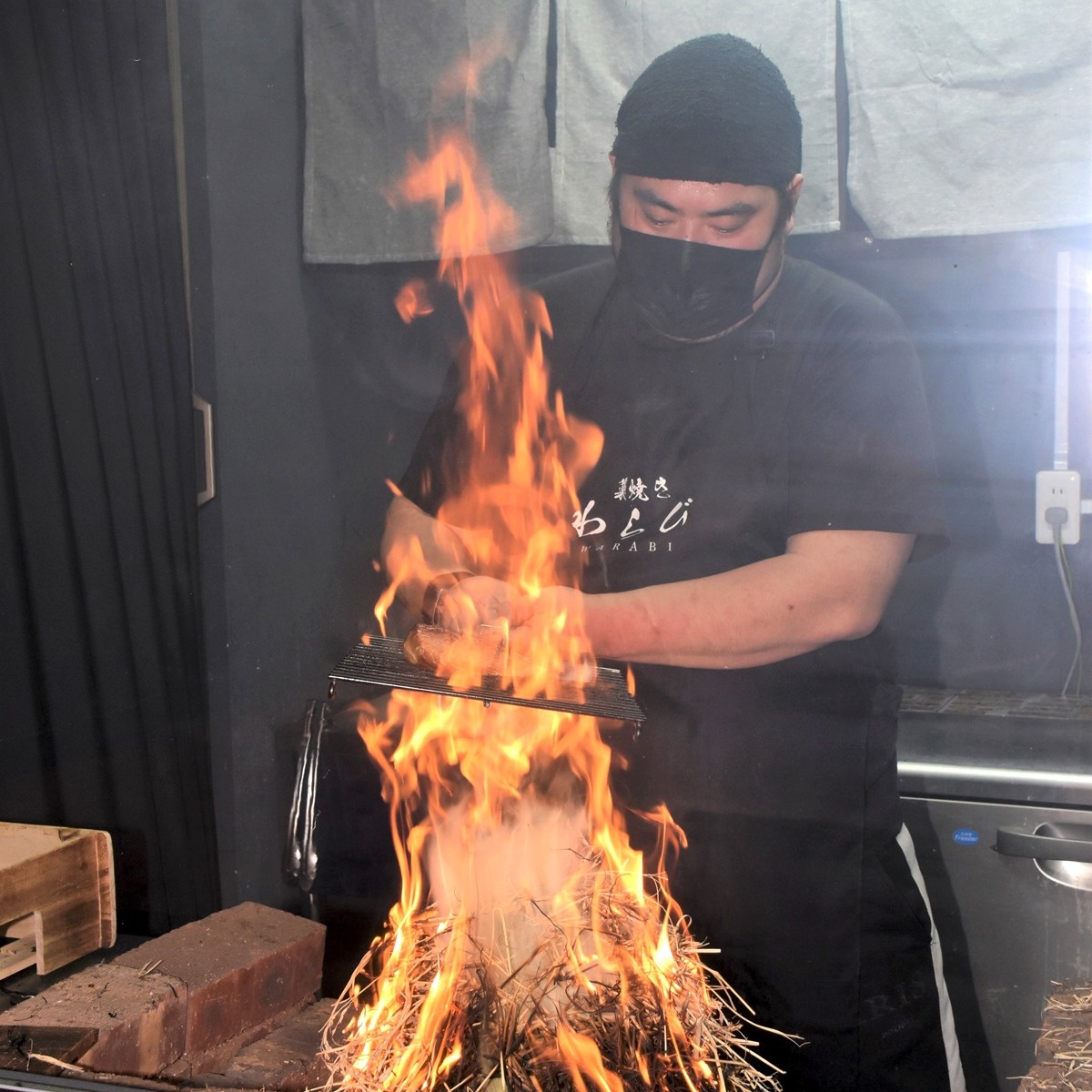 さまざまなわら焼きを味わえる居酒屋。カツオ、タイ、サーモン、ハマチ(各1650円)のほか、豚バラ、鶏モモ(各1320円)など種類豊富で、調理場で素早く豪快に焼き上げる様子をガラス張りの小窓から見ることができる。豚キムチ(715円)やずりの唐揚げ(605円)などの一品料理も人気。カウンター席、テーブル席、座敷を用意している。