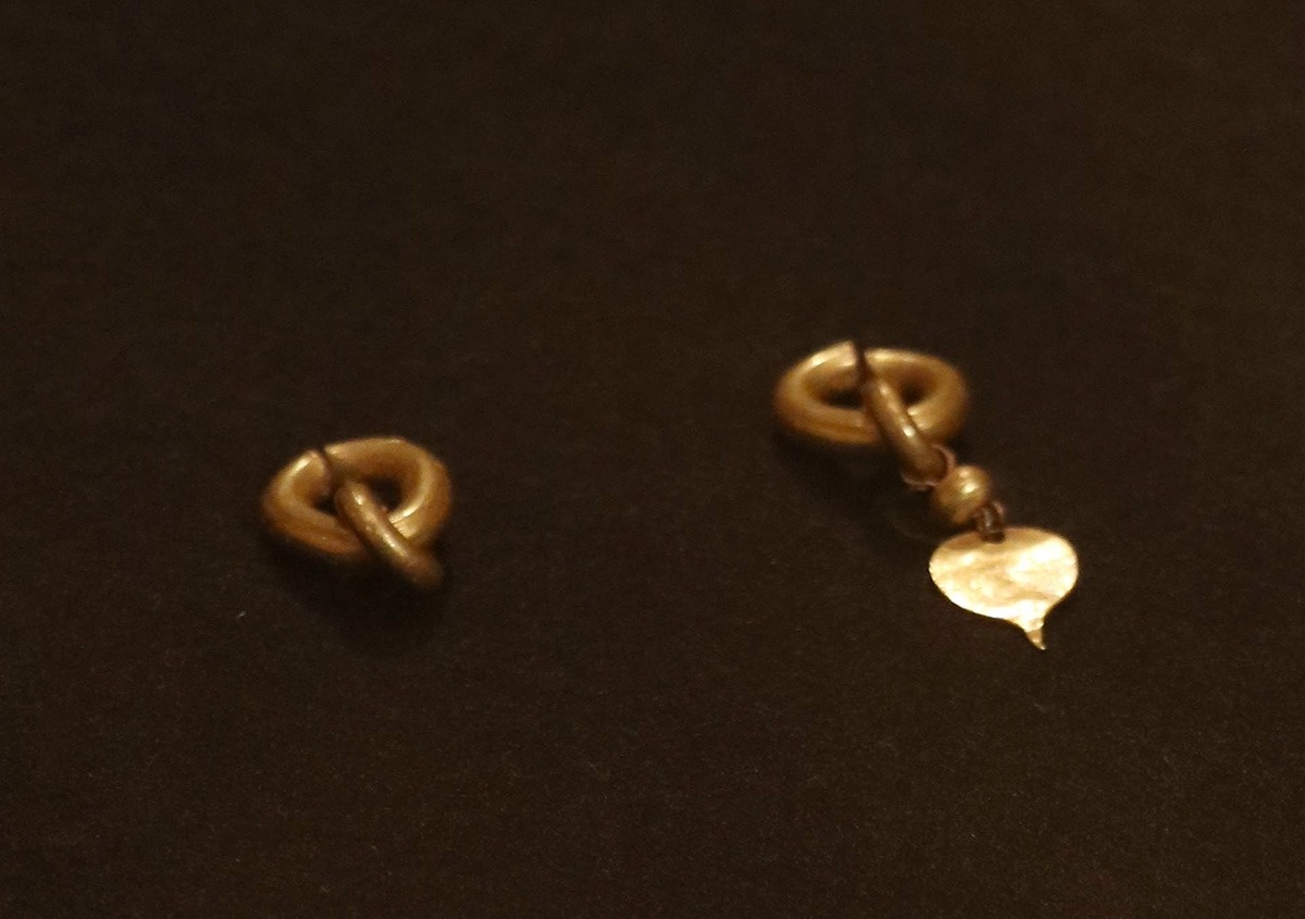 また、女木島の女木丸山古墳で見つかった「金製垂飾付耳飾(きんせいすいしょくつきみみかざり)」は、5世紀に百済で作られ、ハート型の装飾が特徴。国内では数例しか見つかっておらず、被葬者は百済や渡来人と密接な関係を持った人物と推測できるという。
