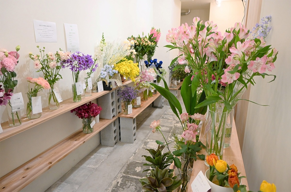 高松市宮脇町にある24時間営業:無人販売花店の2号店。好きな時間に接客を気にせず購入できるのが魅力。今の時季は桜やチューリップ、ラナンキュラスといった春が感じられる約40種の切り花が並んでいる。いずれも1本200~800円前後。購入する際は店内にあるオーダーシートに花の種類と本数を記入し、現金と一緒に封筒にまとめて店内のボックスに投函(とうかん)する。