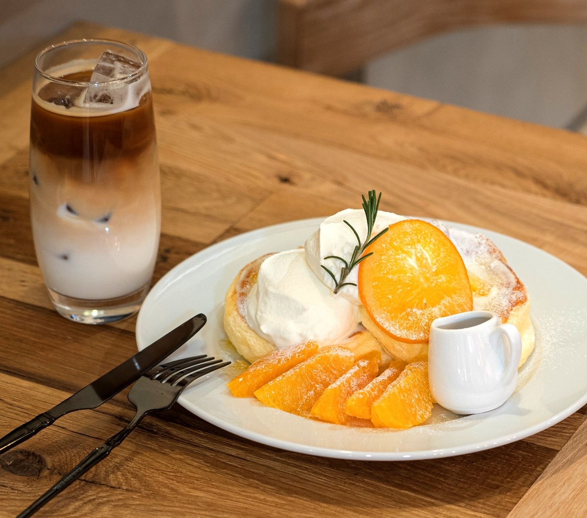 バターミルクでふわっと仕上げたスフレパンケーキと、自家製パティを使ったハンバーガーが味わえる。パンケーキはイチゴなどの旬の果物を使用。ハンバーガーは肉々しい「牛100%パティ」と、牛肉、豚肉、タマネギを合わせた柔らかな「ブレンドパティ」から選べる。フルーツサンドのテイクアウトも人気。