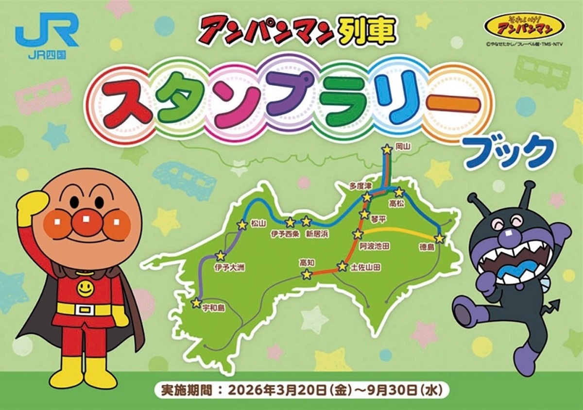 JR四国(香川県高松市)は親子連れらにアンパンマン列車を楽しんでもらうスタンプラリーを開催している。主要駅や列車内など計25カ所に用意するスタンプを4個以上集めると、アンパンマンにちなんだ賞品が当たる。9月30日まで。