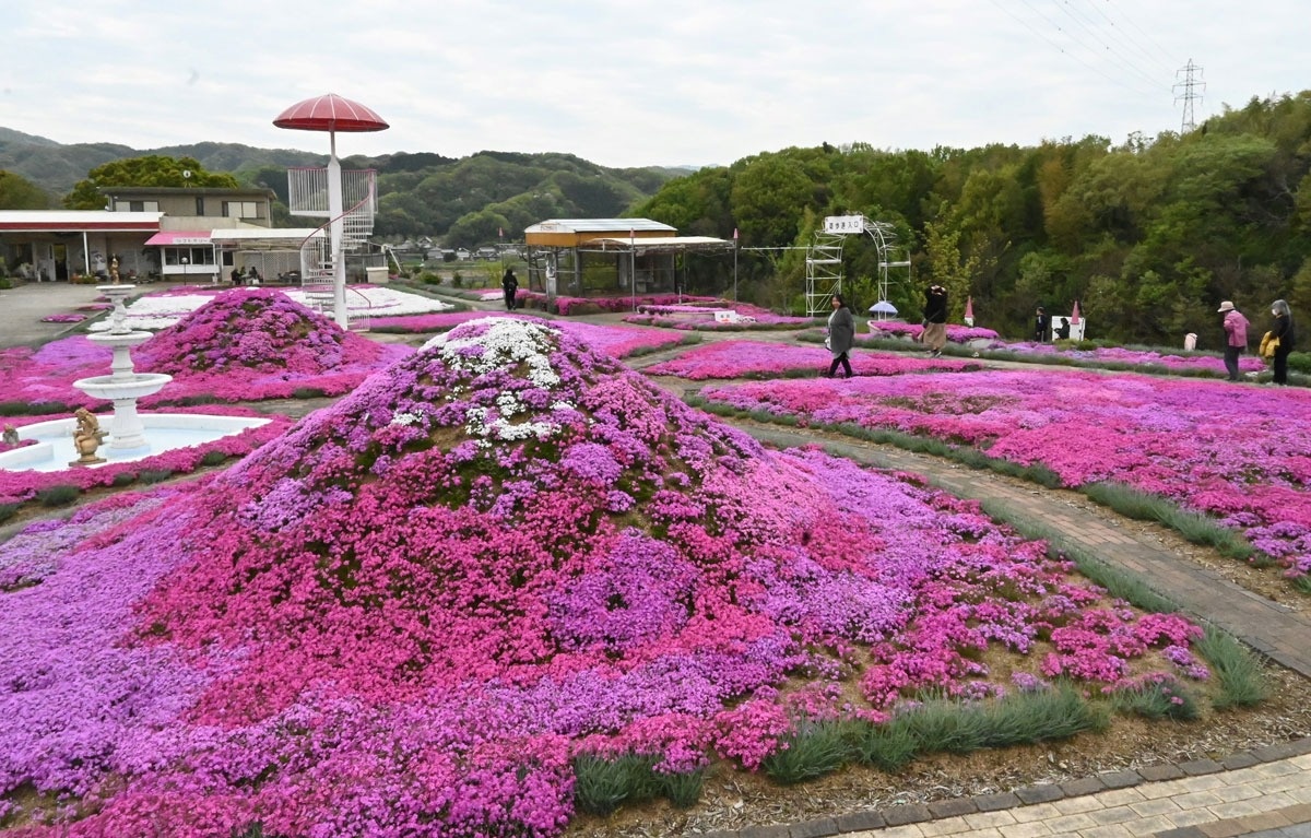 シバザクラが楽しめるのは今月末まで。見頃の終盤には約7万株のナデシコが咲き始め、5月上旬まで園内を彩る。開園時間は午前9時半~午後6時。入園料500円(小学生以下無料)。問い合わせは同店〈087-849-1926〉。