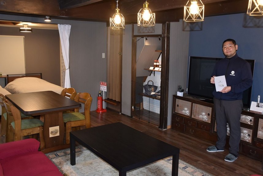 運営は、地元のまちおこし会社「ファイブアップたどつ」と同町地域おこし協力隊員の曽根厚宏さん(32)。日本一周や世界一周の旅をしてきた曽根さんが中心となり、旅好きの経験を生かして開業した。解体寸前だった空き家を買い取り、あえて梁(はり)を見せる内装とするなど、古民家の趣を残しながらリノベーションした。