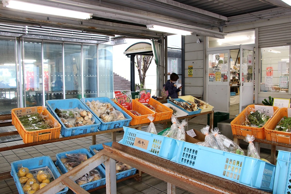 野菜や果物などは常時約20~30種をラインアップ。土日の午前8時ごろの品ぞろえが特に豊富という。開店前から列ができる日もある。この時季はイチゴ、タケノコ、新タマネギが一押し。イチゴと新タマネギは5月中は店頭に並ぶ見込みで、スナップエンドウや新ジャガイモなどのほか夏野菜も出始める。