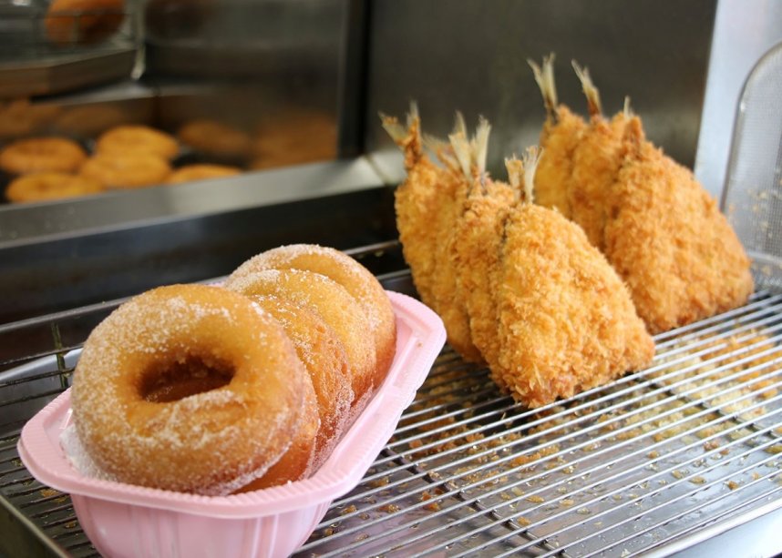 スタッフが手作りするドーナツとアジフライも好評で、午前中に売り切れることが多い。ドーナツは外側がサクサク、中はもちっとしていて素朴なおいしさ。タイミングが合えば揚げたてを購入できる。