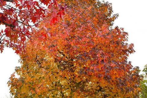 五色台の丘陵に囲まれた海の見える公園。紅葉の見どころの一つ「紅の峰通り」では、立ち並ぶアメリカフ...