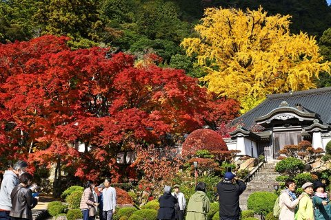 徳島との県境に近い女体山(標高776メートル)の麓にある四国霊場結願寺。この時季は県内有数の紅葉を...