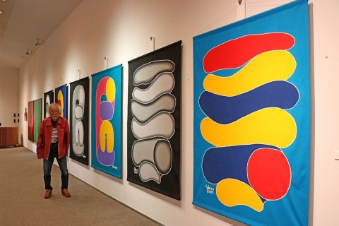 讃岐のり染めと初コラボ 速水史朗の色彩世界 新作など50点 丸亀・24日まで